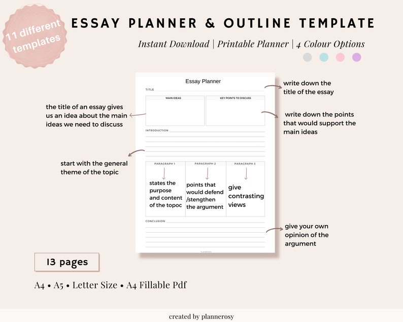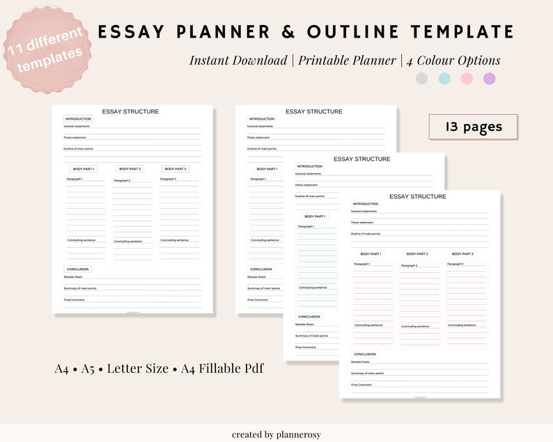Essay Planner Template Printable for Students Essay Writing Etsy