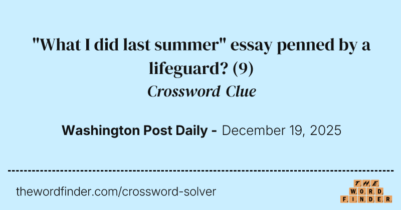 quot What I did last summer quot essay penned by a lifeguard? Crossword Clue