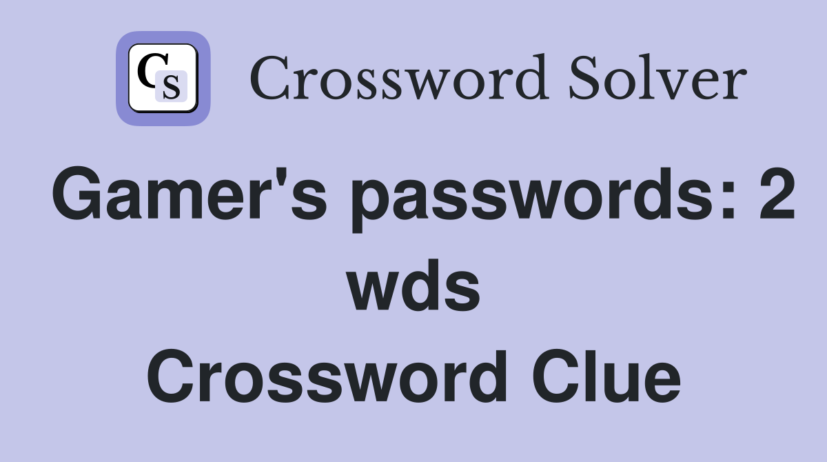 Gamer #39 s passwords: 2 wds Crossword Clue Answers Crossword Solver