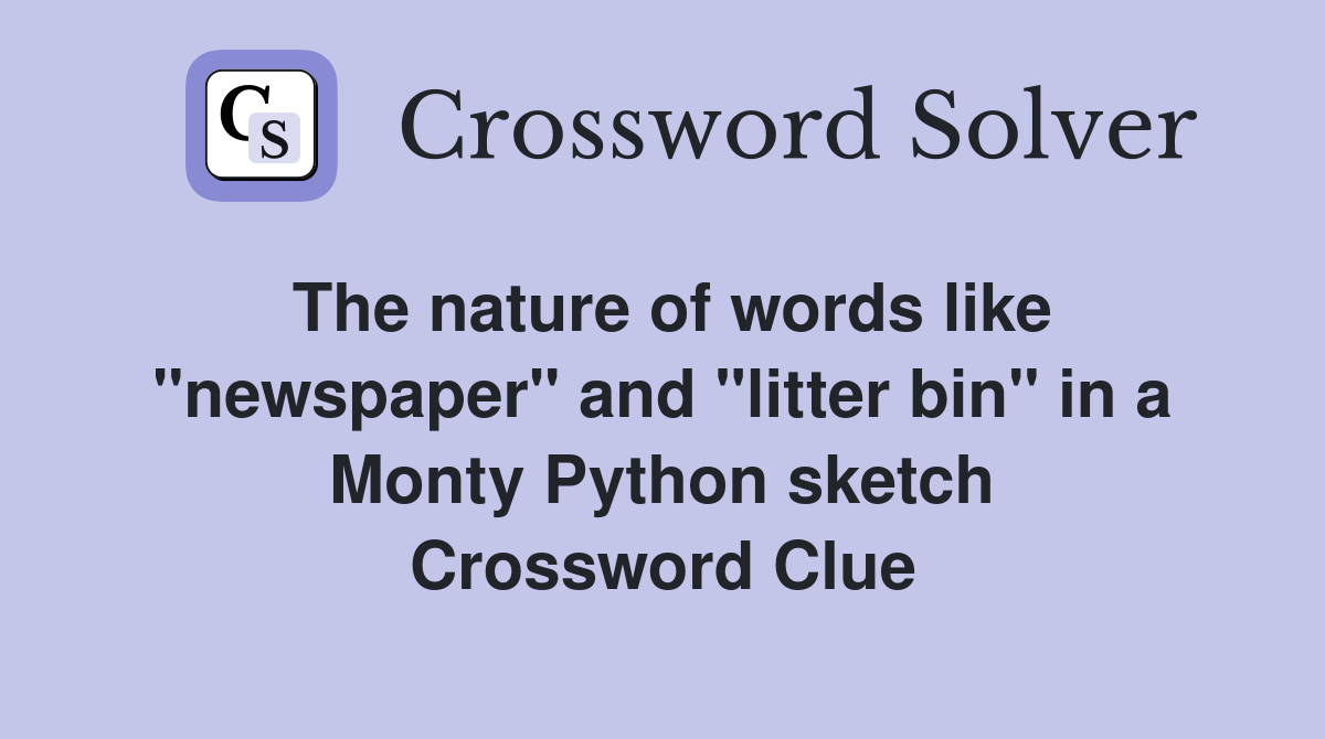 The nature of words like quot newspaper quot and quot litter bin quot in a Monty Python