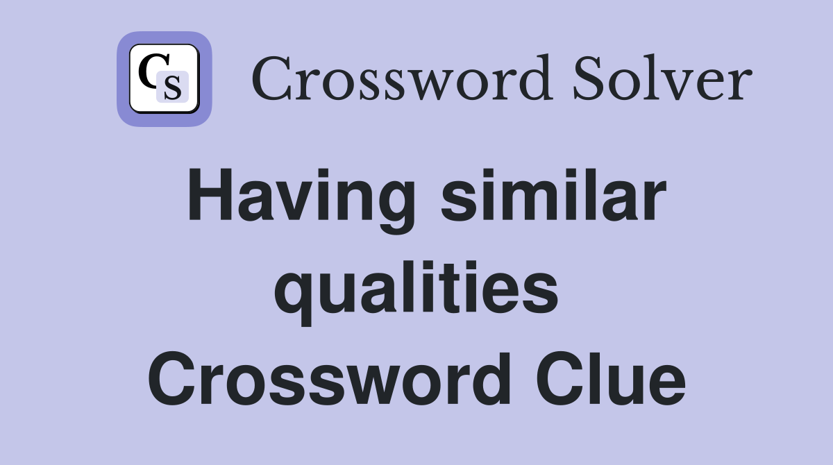 Having similar qualities Crossword Clue Answers Crossword Solver