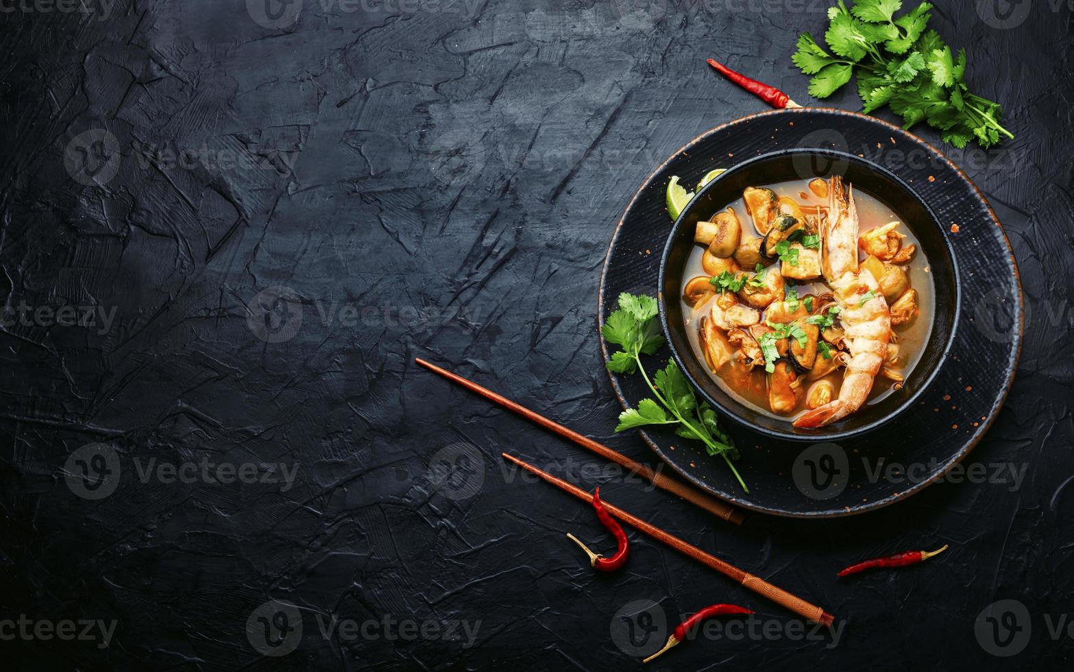 Tom yum soup with seafood and coconut milk 13664444 Stock Photo at Vecteezy