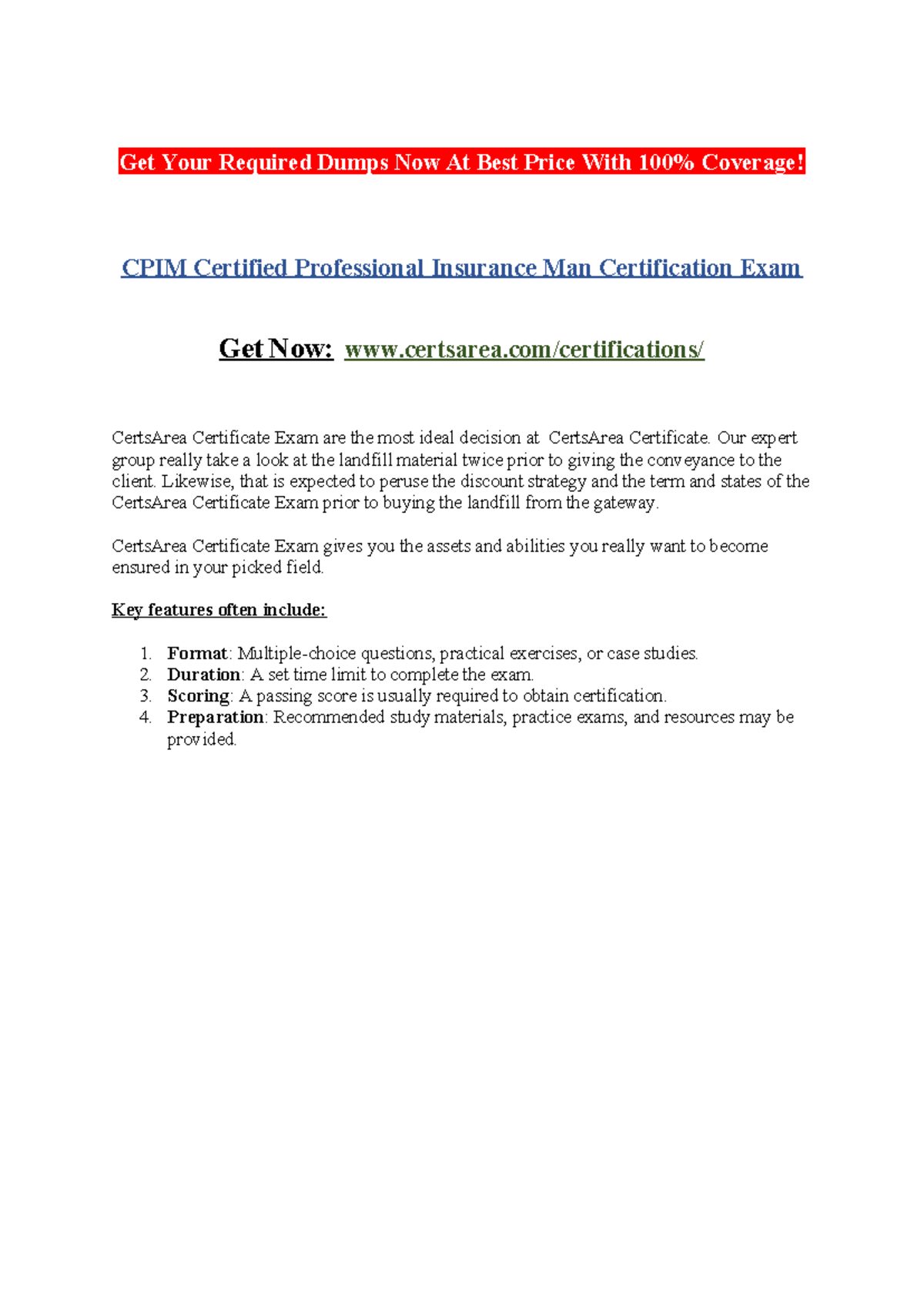 CPIM Certified Professional Insurance Man Certification Exam Get Your