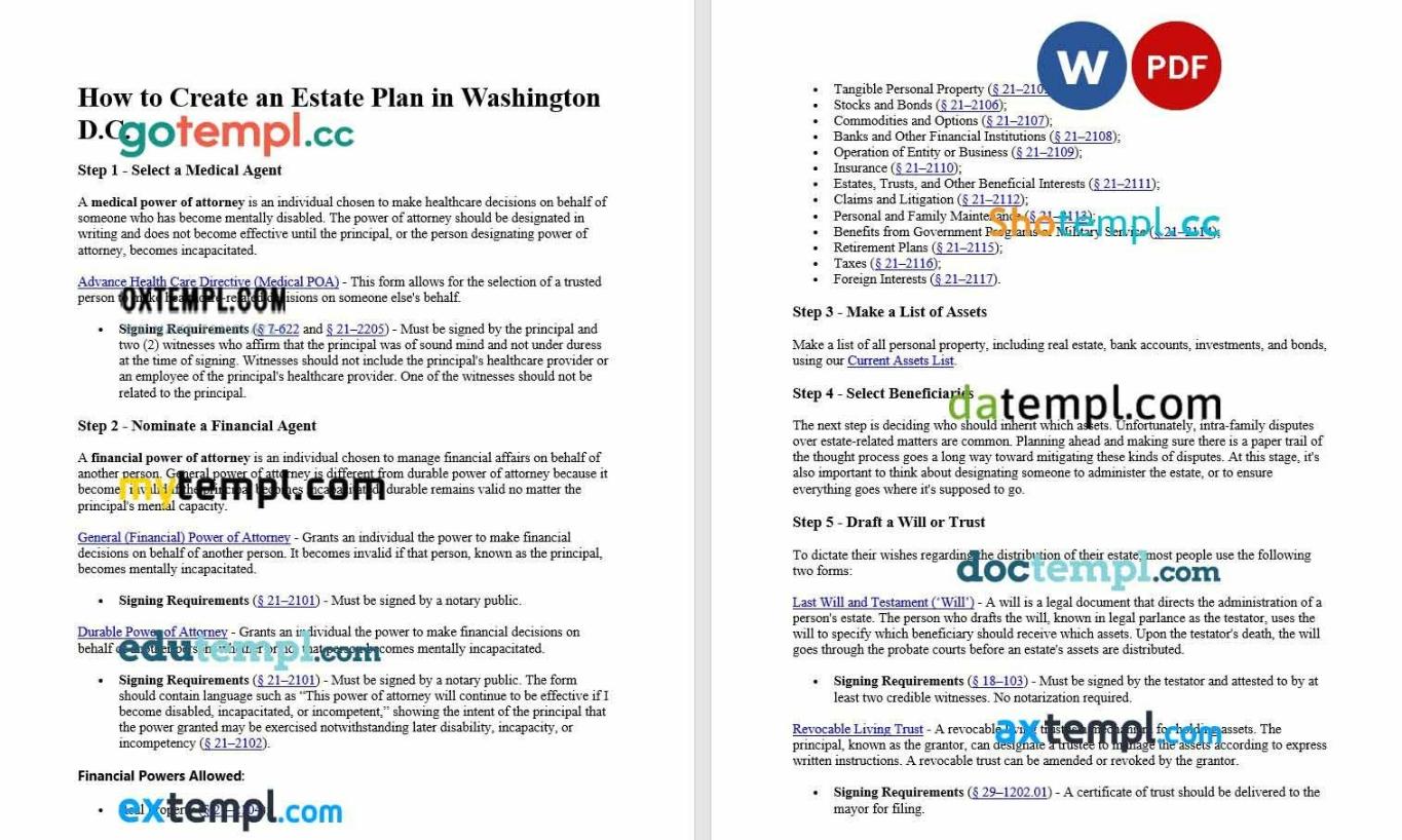 free Washington DC estate planning checklist template Word and PDF format