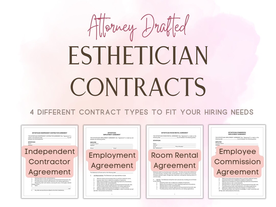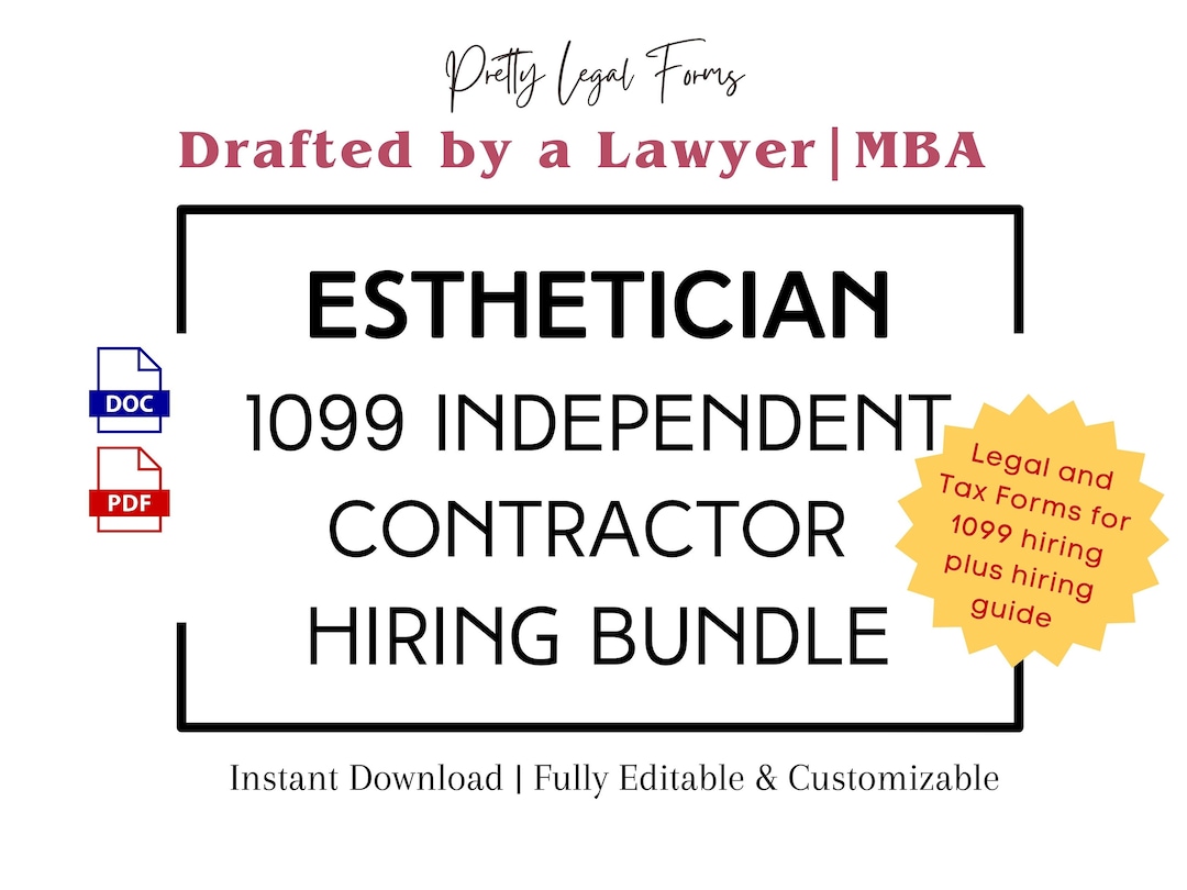 Esthetician Independent Contractor Agreement Hiring Bundle 1099