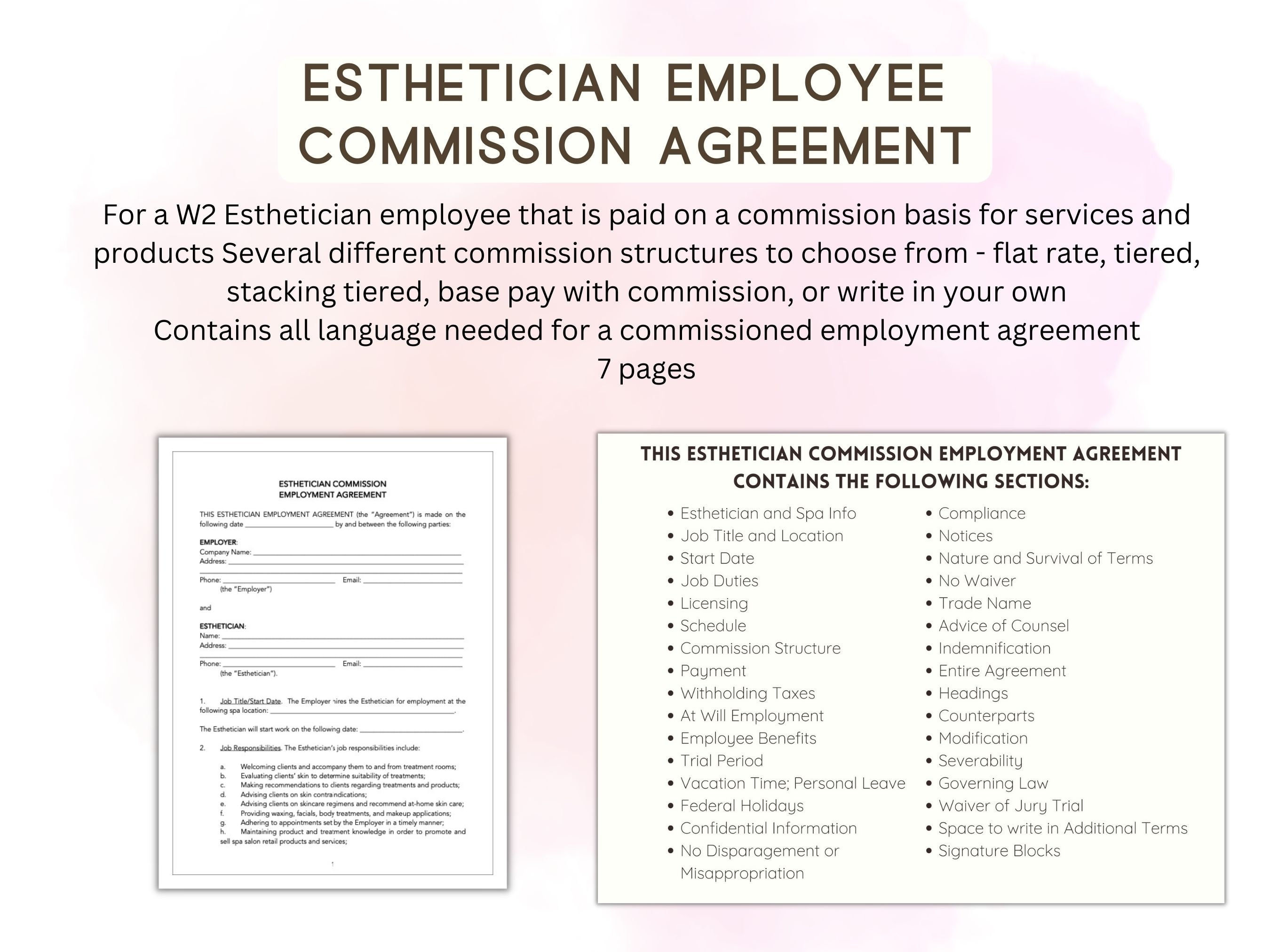 Esthetician Employment Agreement CANVA Template Editable Esthetician