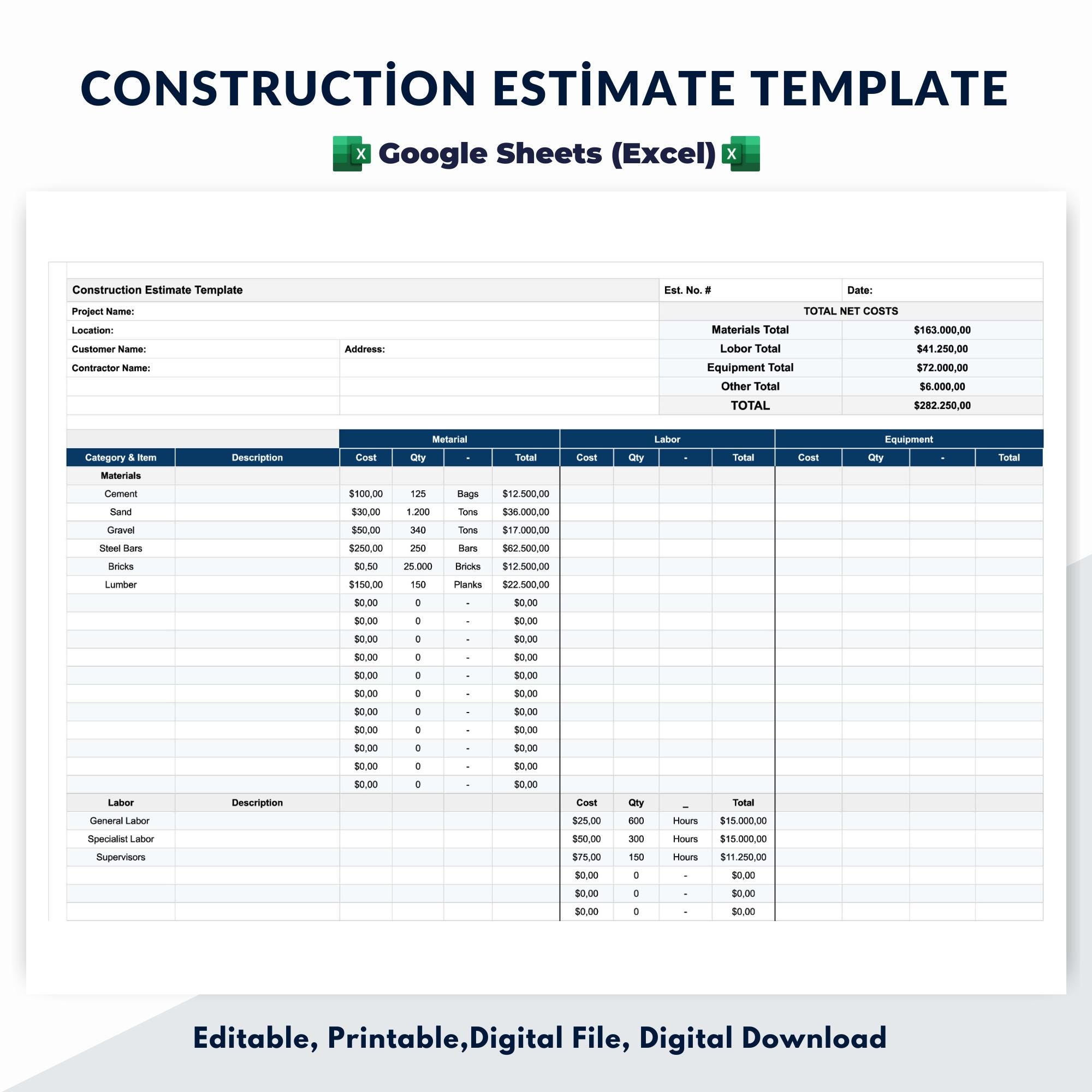 Cost Estimation Estimate Excel Template And Google Sheets File For Free