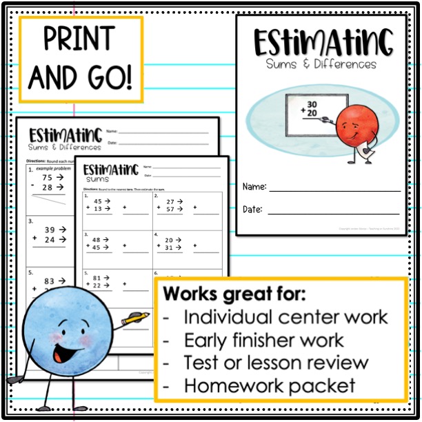 Estimating Sums Differences Worksheets Estimating Worksheet Pages