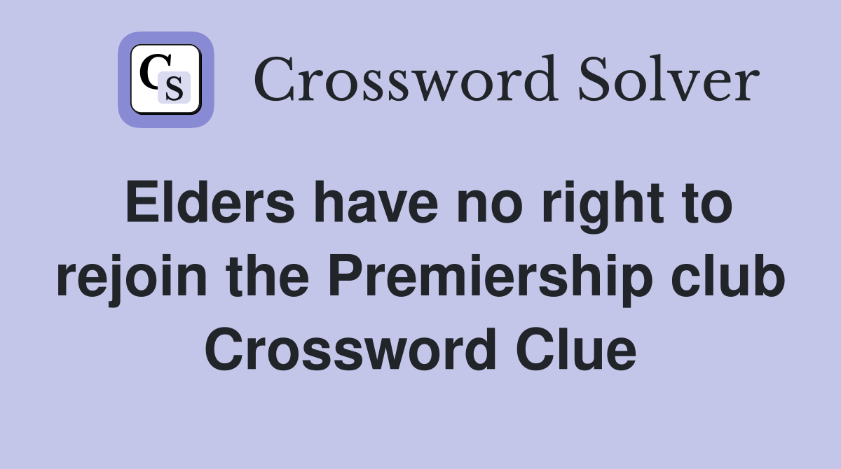 Elders have no right to rejoin the Premiership club Crossword Clue