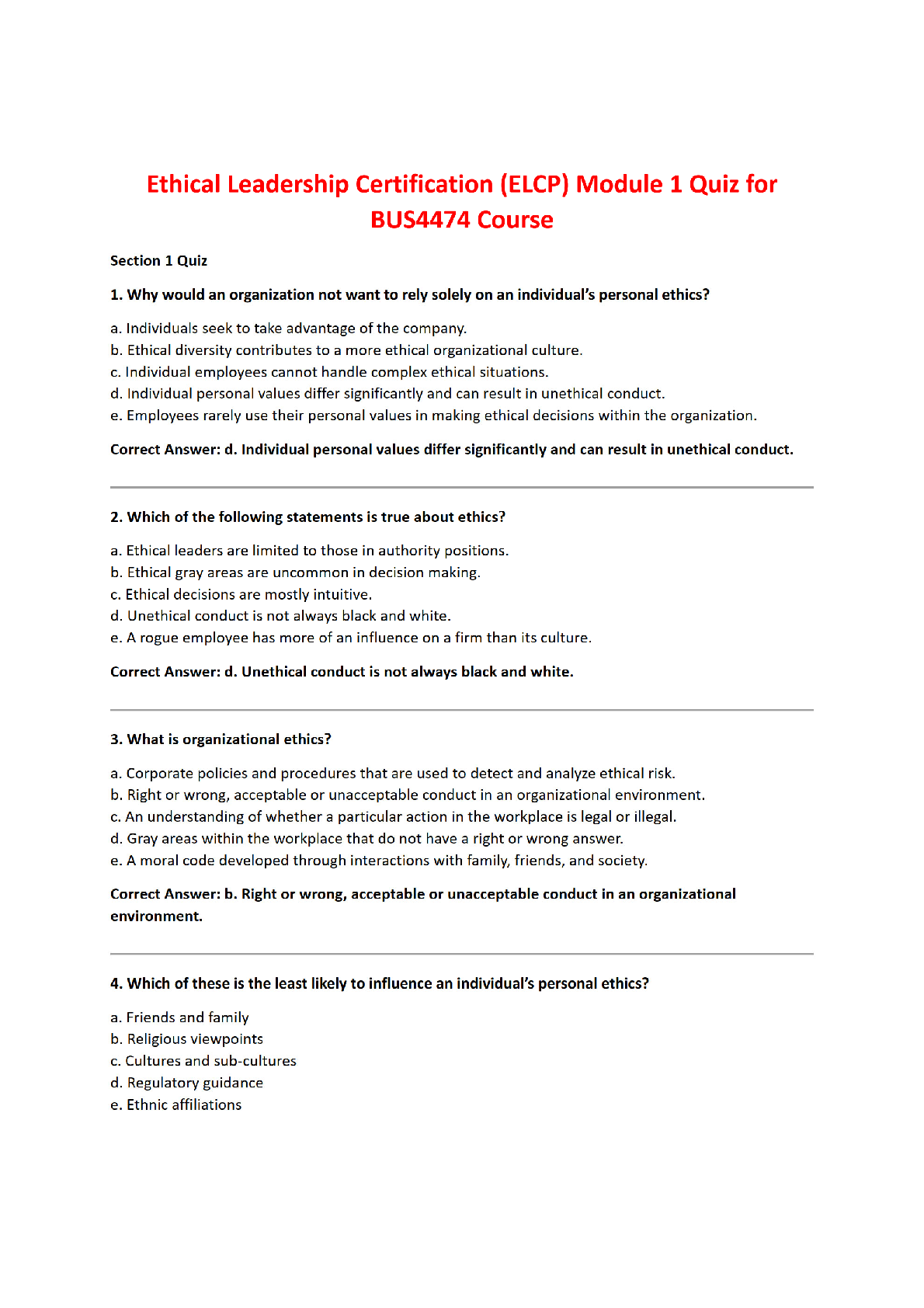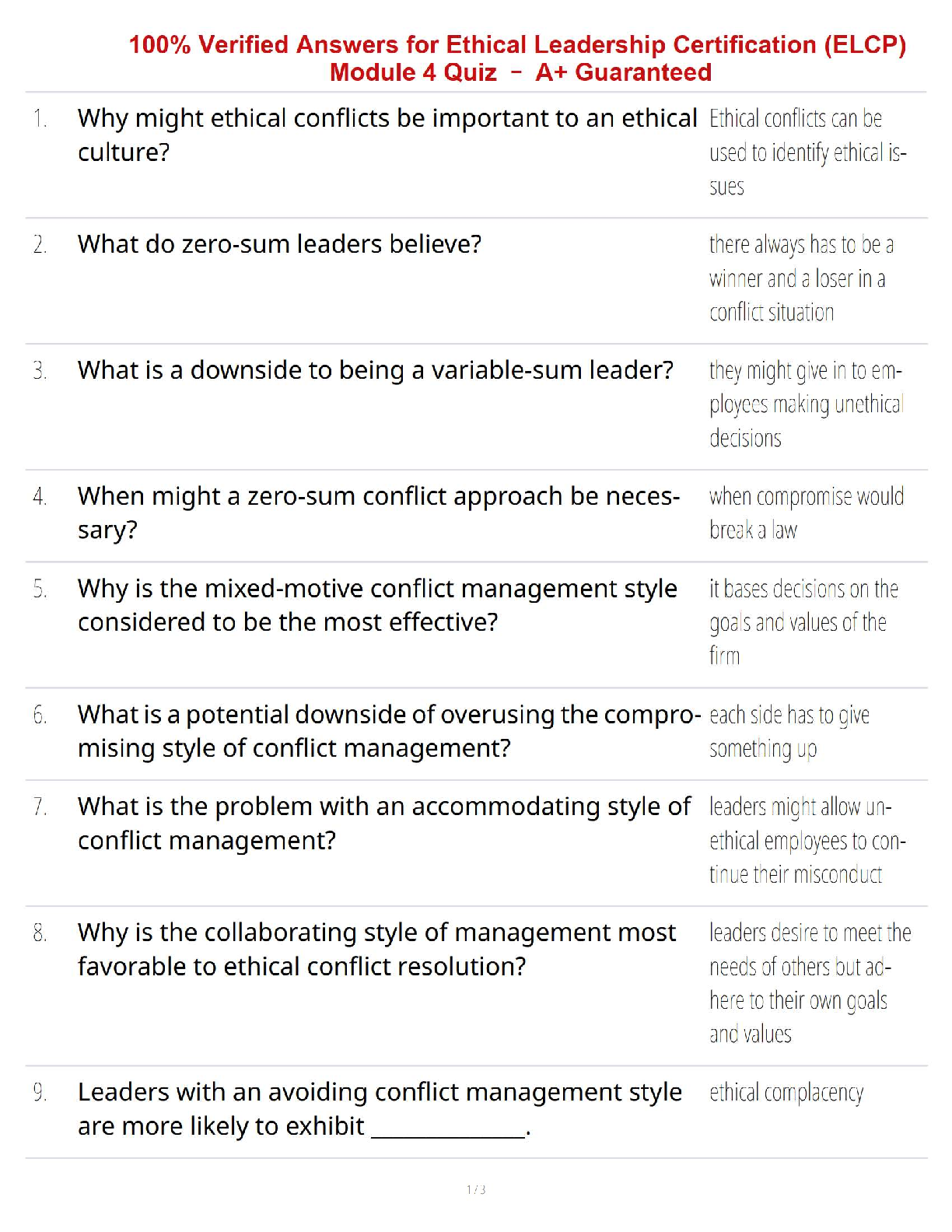 100% Verified Answers for Ethical Leadership Certification (ELCP
