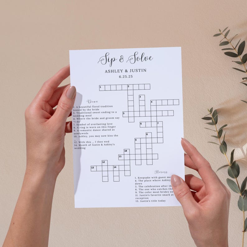 Wedding Crossword Puzzle Sip and Solve Crossword Puzzle Wedding Puzzle