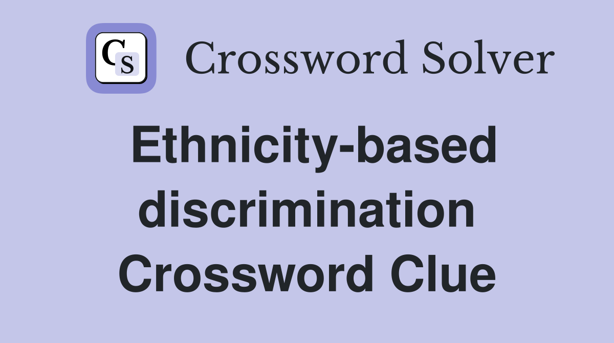 Ethnicity based discrimination Crossword Clue Answers Crossword Solver