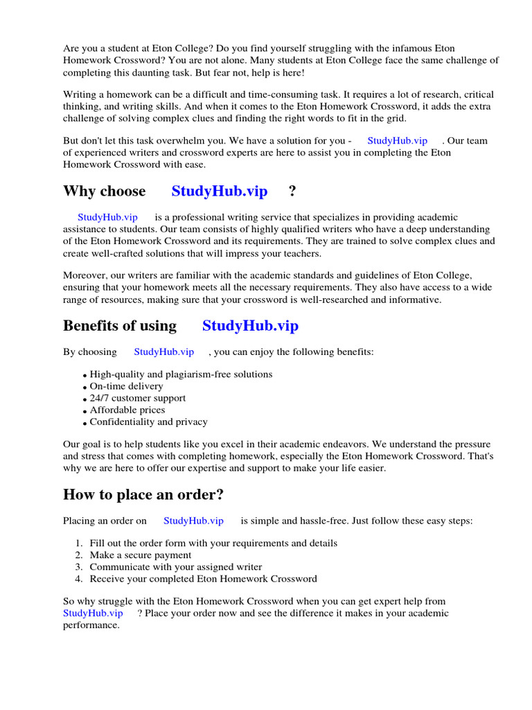 Eton Homework Crossword PDF Crossword