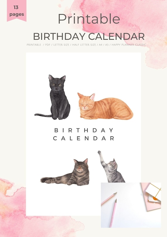 Birthday Calendar Printable Birthday Tracker Birthday Etsy