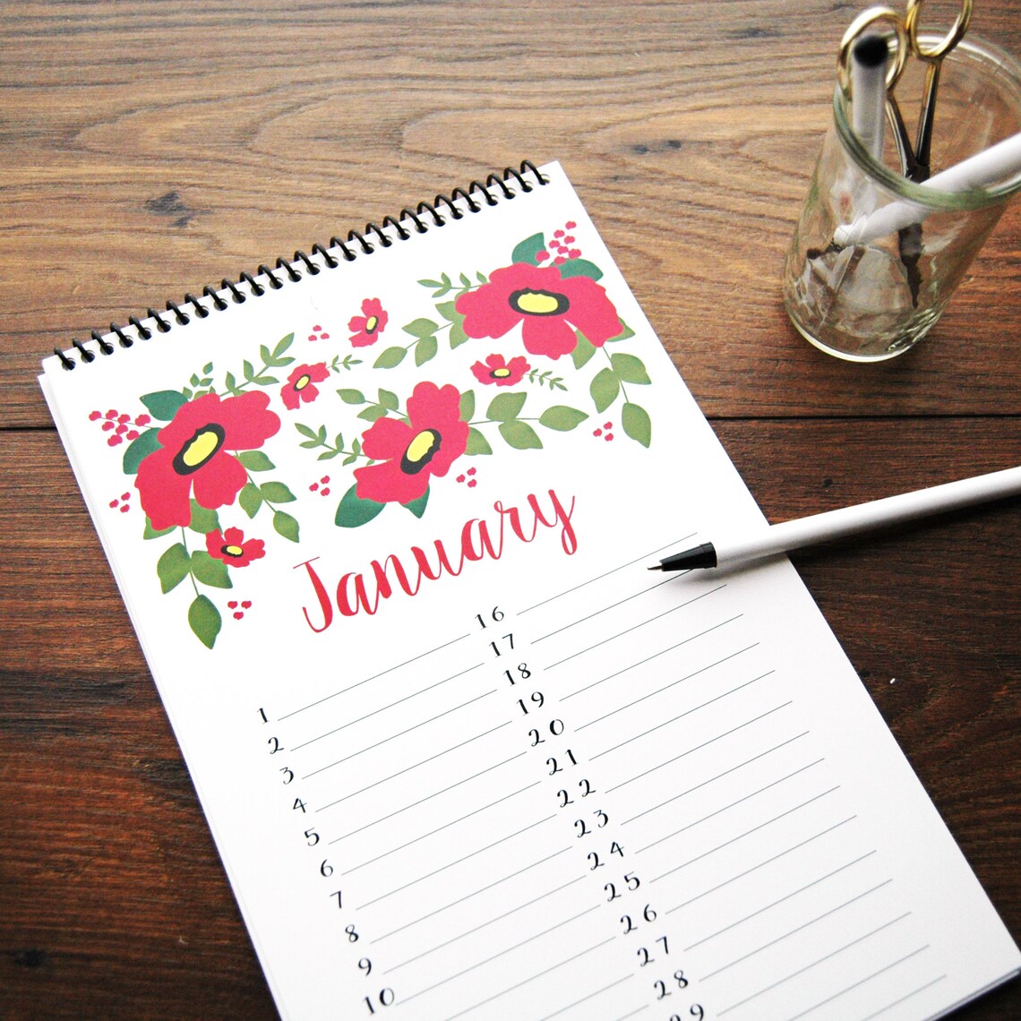 Large Floral Watercolor Birthday Calendar 8 5x11 Etsy Birthday