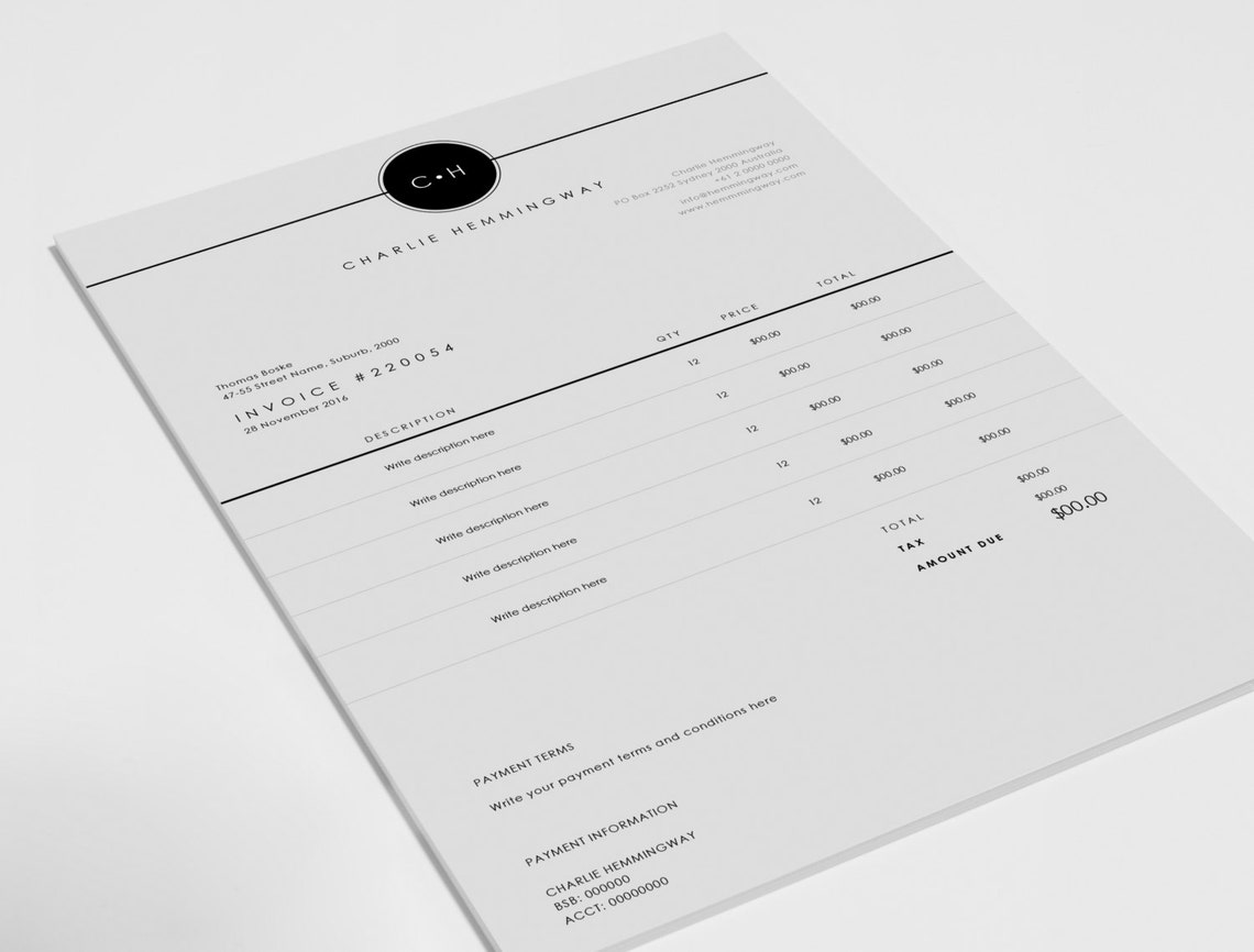 Invoice Template Invoice Design Receipt MS Word Invoice Template
