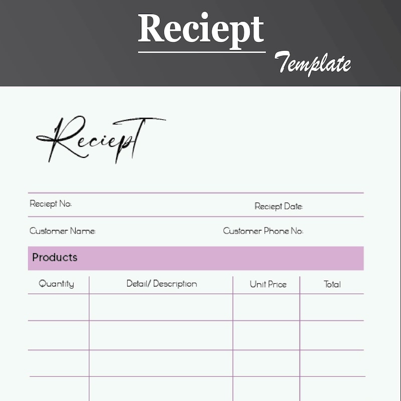 Receipt Template Order Receipt Excel Google Sheets Etsy