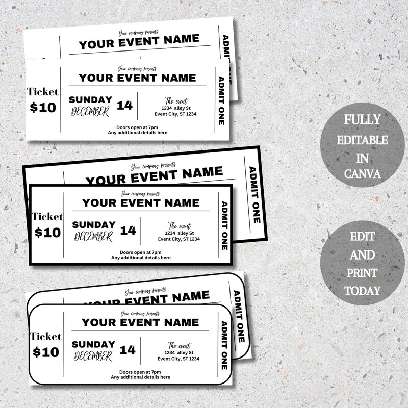 Editable Event Ticket Templates DIY Printables for Every Occasion