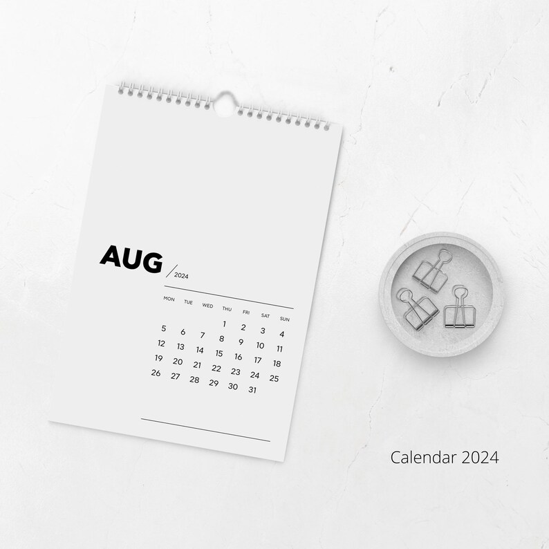 Wall Calendar 2024 Minimal Calendar 2024 Black white Calendar A4 A3 Etsy