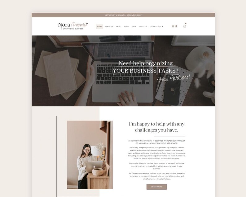 Sarah Virtual Assistant Wordpress Website Template Elementor Pro