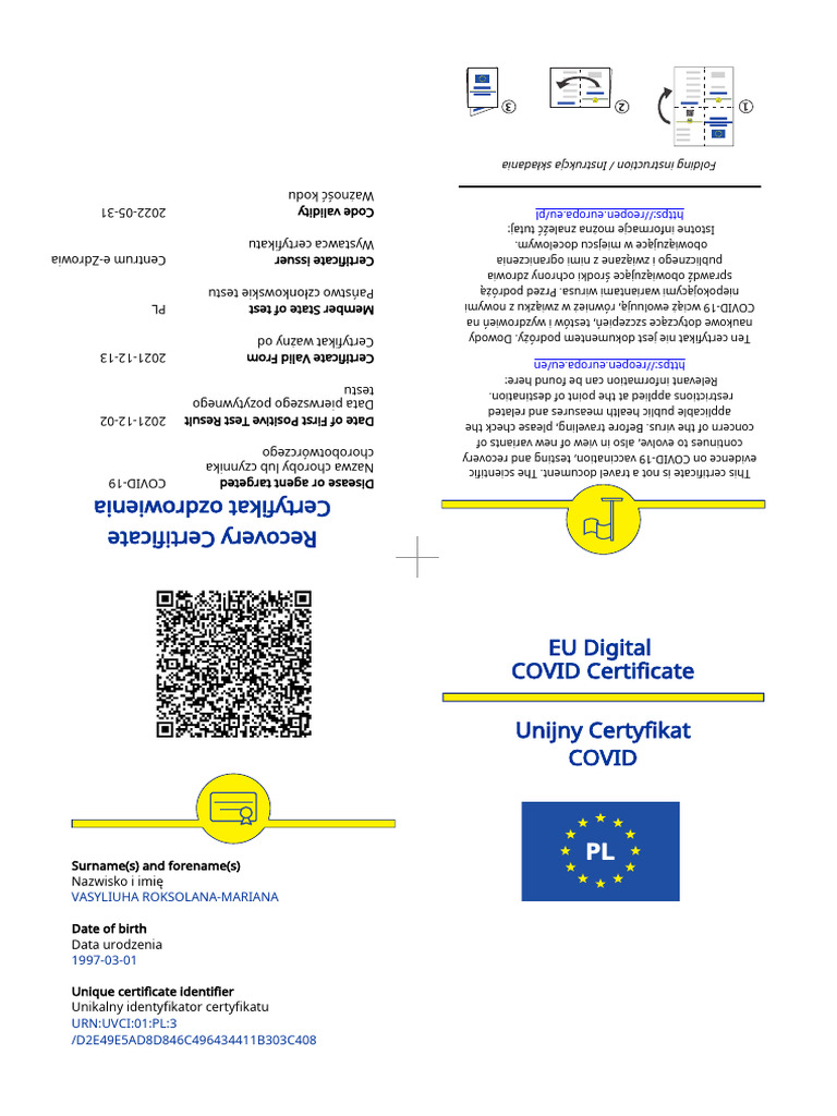 EU Digital COVID Certificate PDF