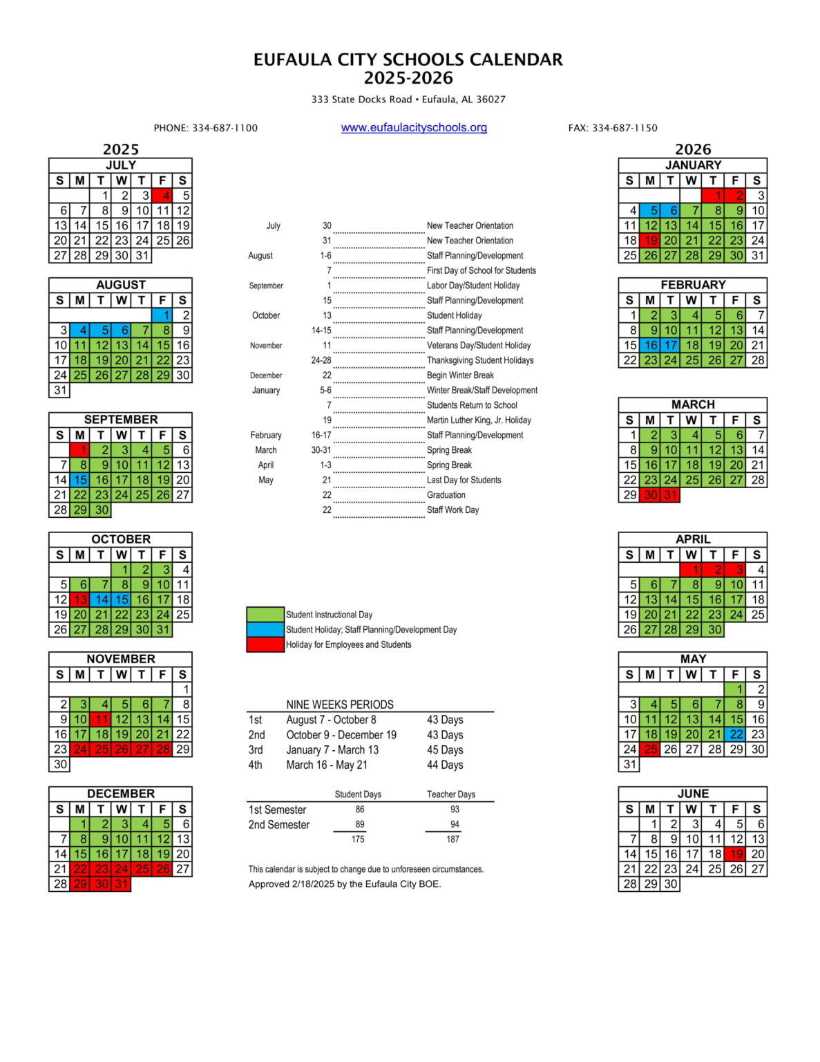 Eufaula City Schools al Calendar 25 26 Revised PDF EduCounty