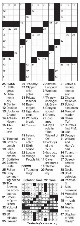 Eugene Sheffer Daily Crossword Printable Printable Word Searches