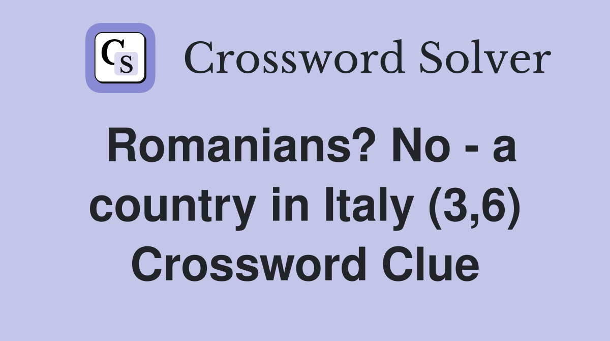 Romanians? No a country in Italy (3 6) Crossword Clue Answers