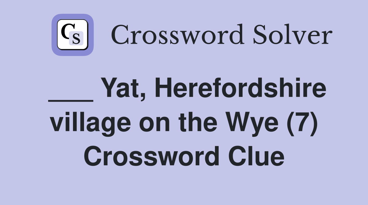 Yat Herefordshire village on the Wye (7) Crossword Clue Answers