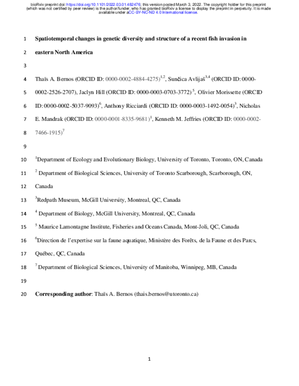 (PDF) Spatiotemporal changes in genetic diversity and structure of a