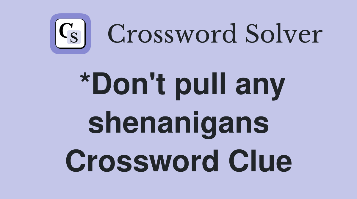 *Don #39 t pull any shenanigans Crossword Clue Answers Crossword Solver