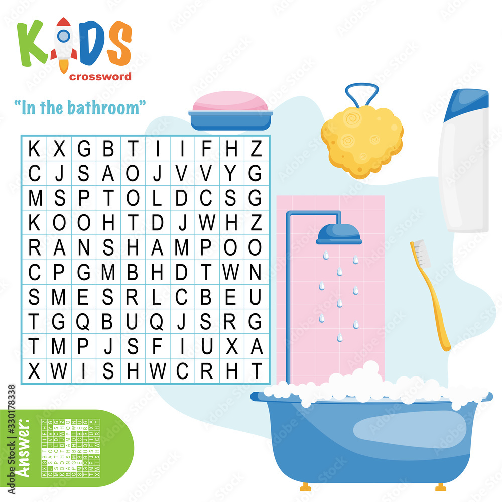Vetor de Easy word search crossword puzzle #39 In the bathroom #39 for