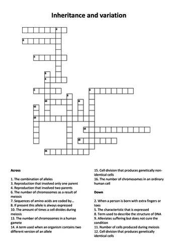 B6 Inheritance Variation and Evolution Crossword Classroom 42