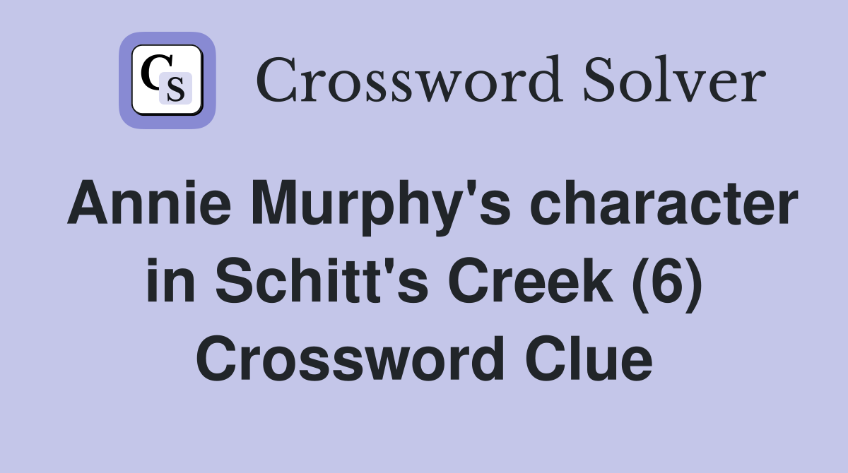 Annie Murphy #39 s character in Schitt #39 s Creek (6) Crossword Clue Answers