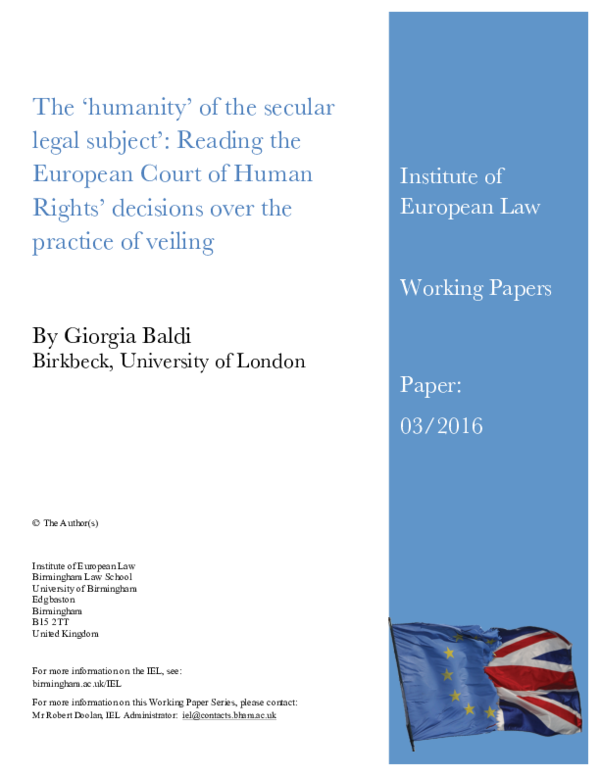 (PDF) The #39 humanity #39 of the secular legal subject #39 : Reading the
