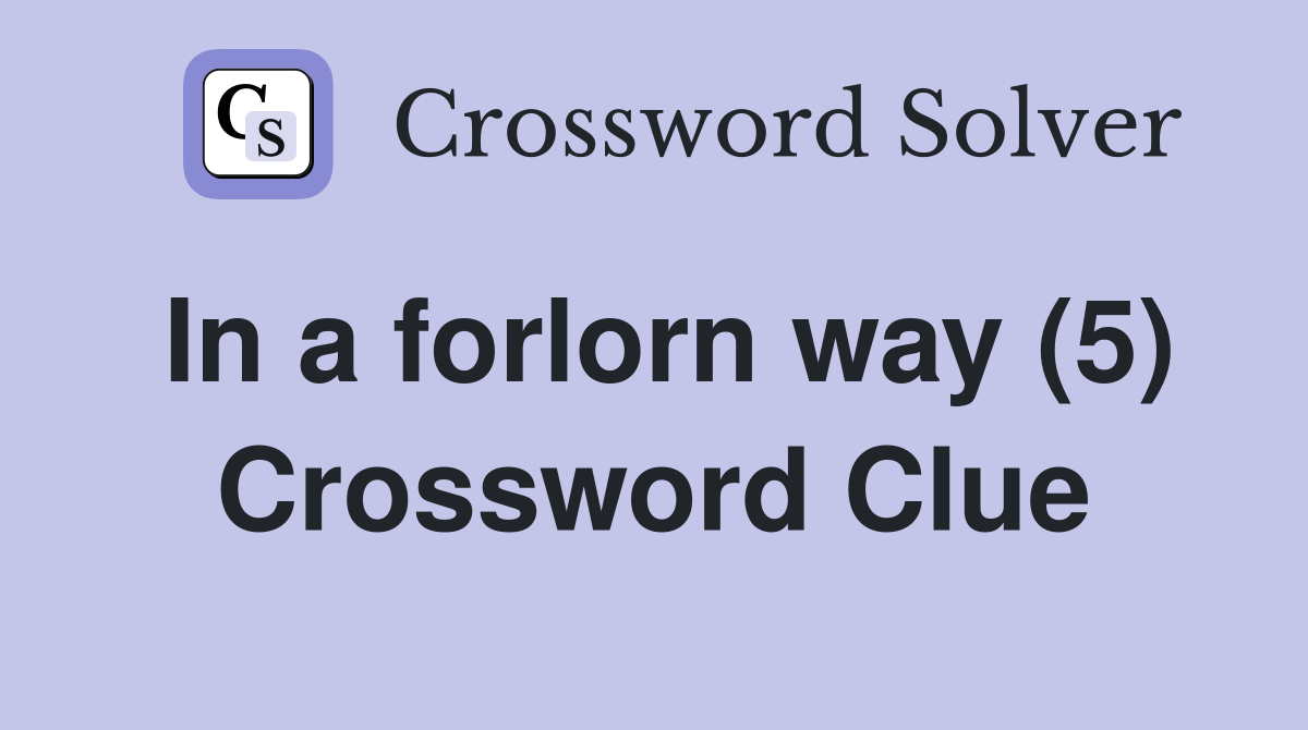 In a forlorn way (5) Crossword Clue Answers Crossword Solver