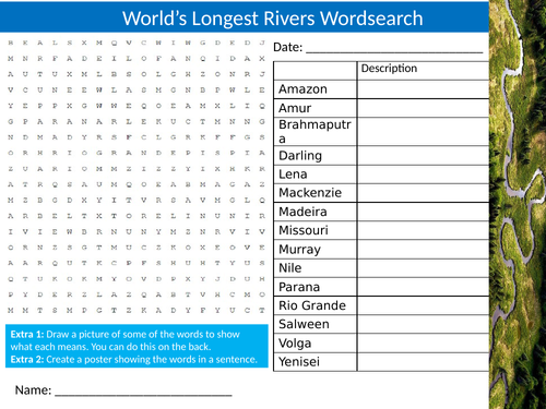 World #39 s Longest Rivers Wordsearch Puzzle Sheet Keywords Homework Geography