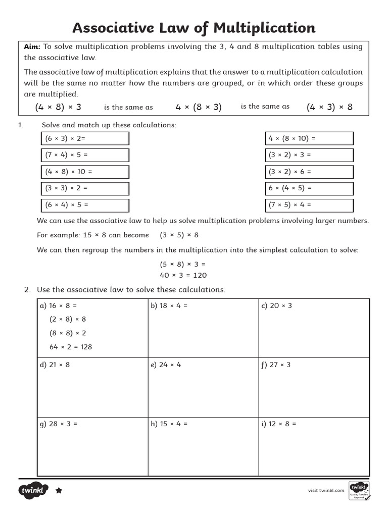 Associative Worksheet 1 PDF