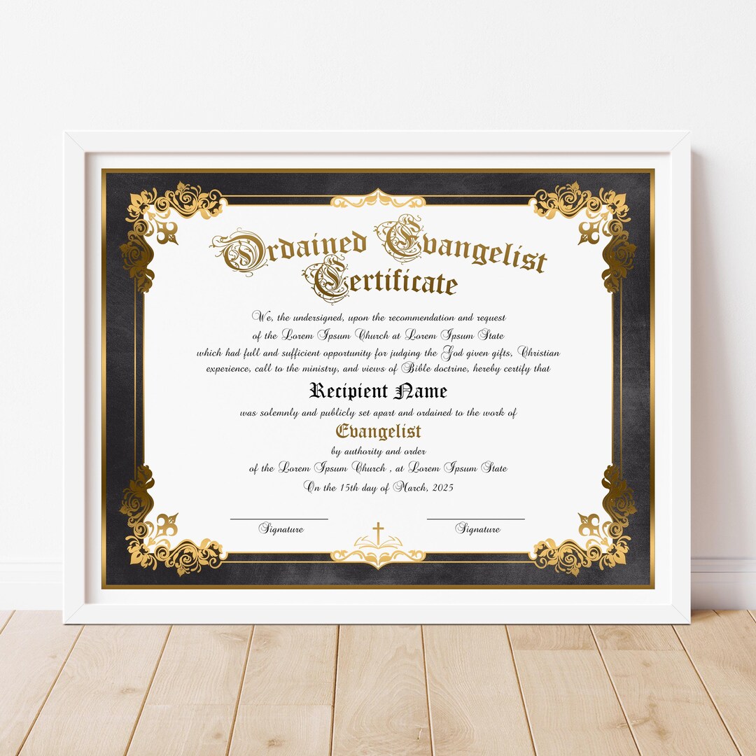 Editable Ordained Evangelist Certificate Template Printable Etsy UK