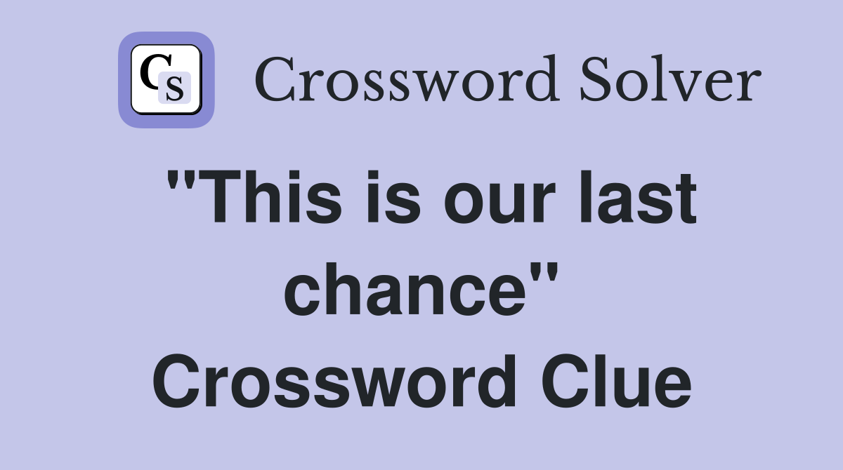 quot This is our last chance quot Crossword Clue Answers Crossword Solver