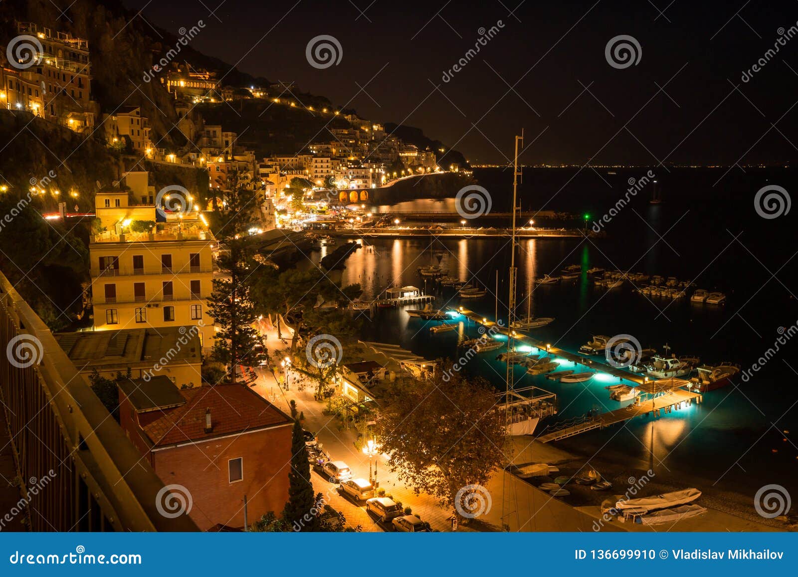 Amalfi at the night stock photo Image of city mountain 136699910