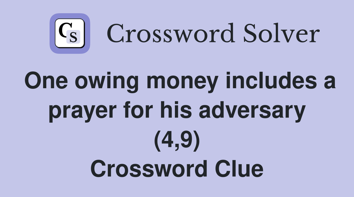 One owing money includes a prayer for his adversary (4 9) Crossword