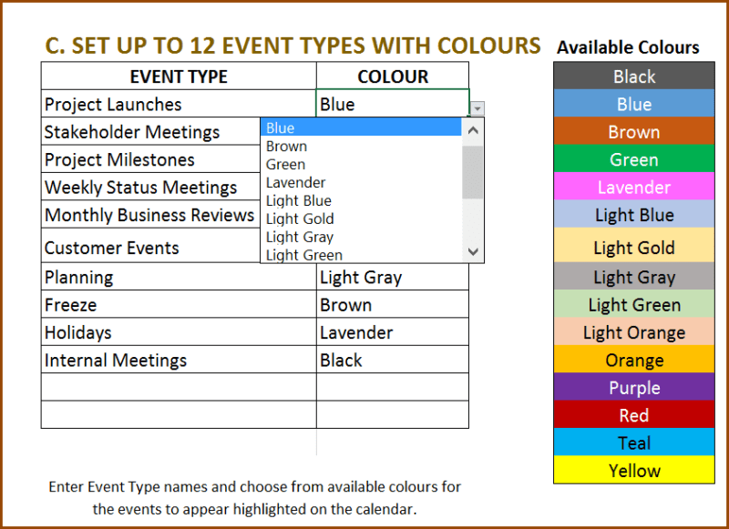 Event Calendar Maker Excel Template v3 Support