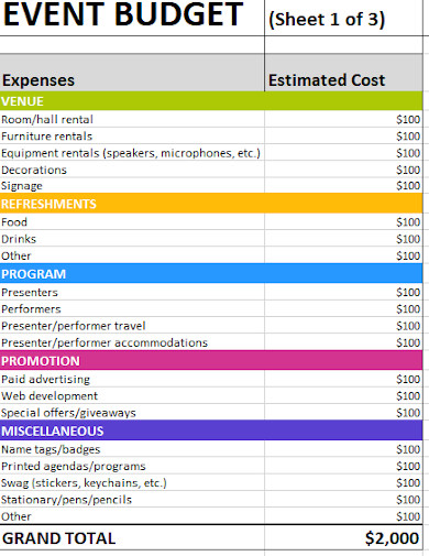 Free Event Budget Templates