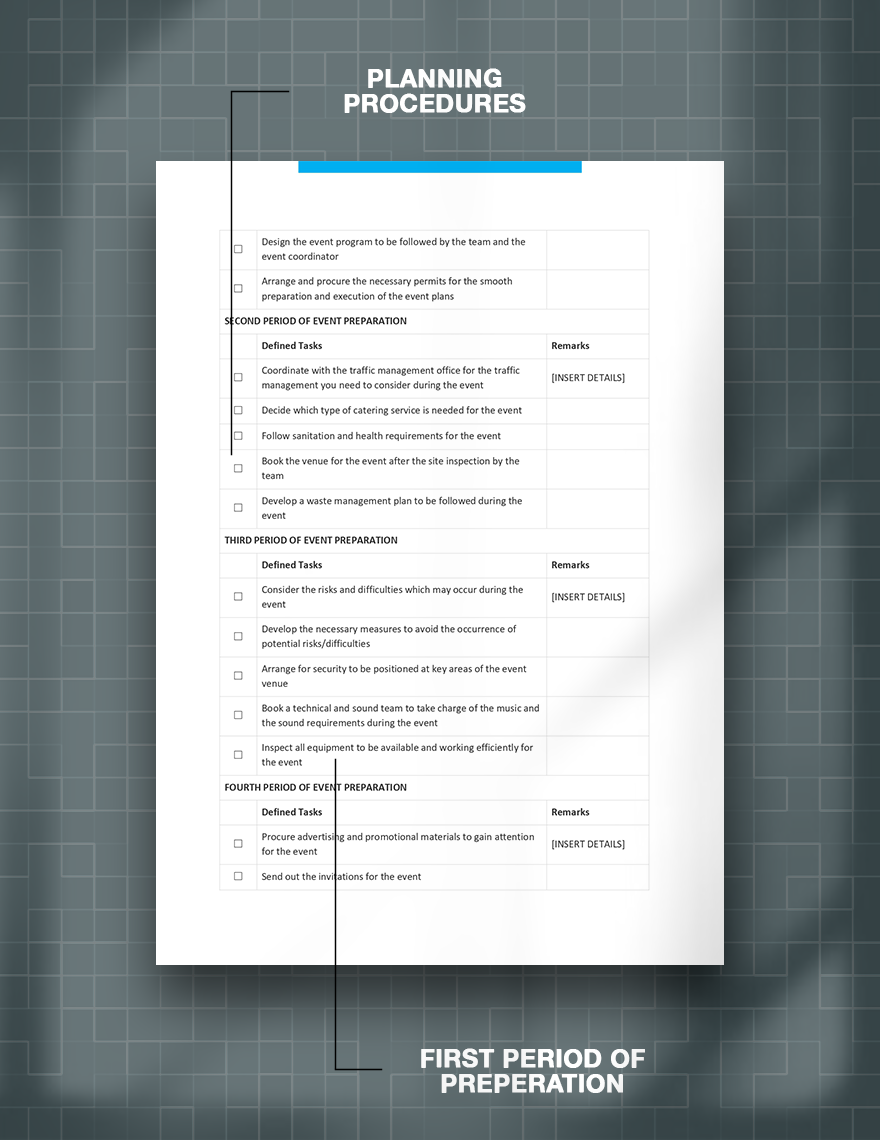 Event Planning Checklist Template in Word and Pdf formats
