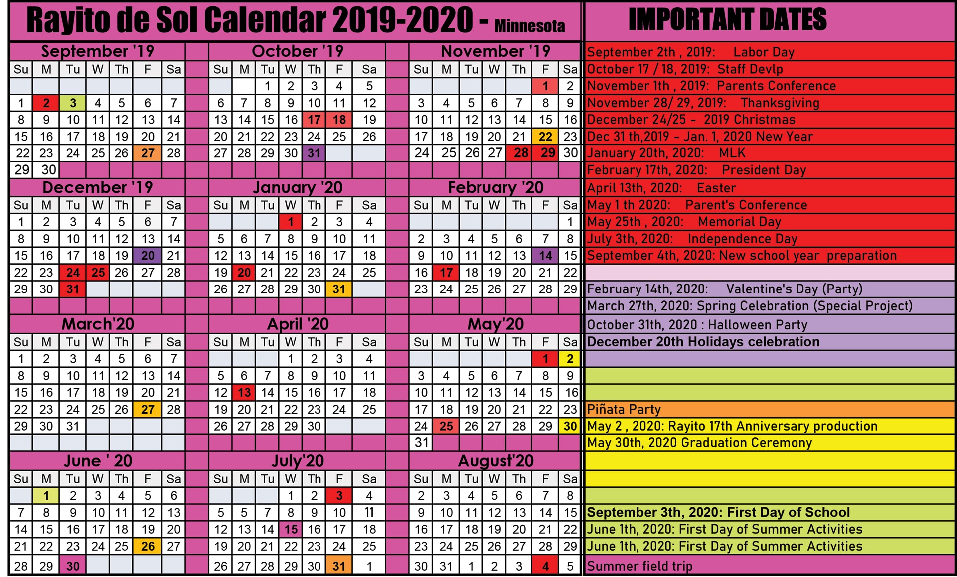 Minneapolis School District Calendar US School Calendar