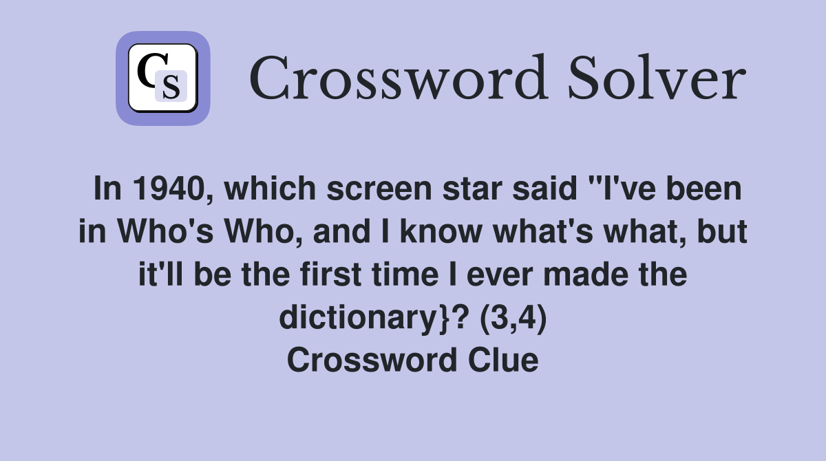 In 1940 which screen star said quot I #39 ve been in Who #39 s Who and I know