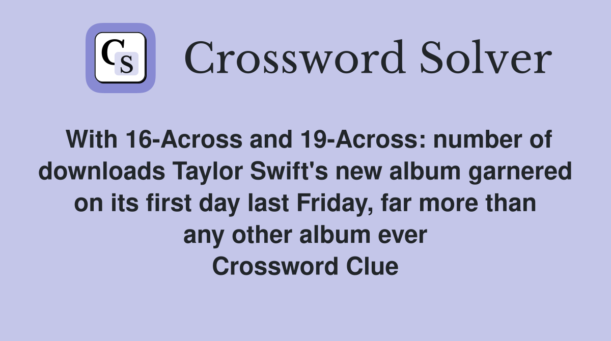 With 16 Across and 19 Across: number of downloads Taylor Swift #39 s new