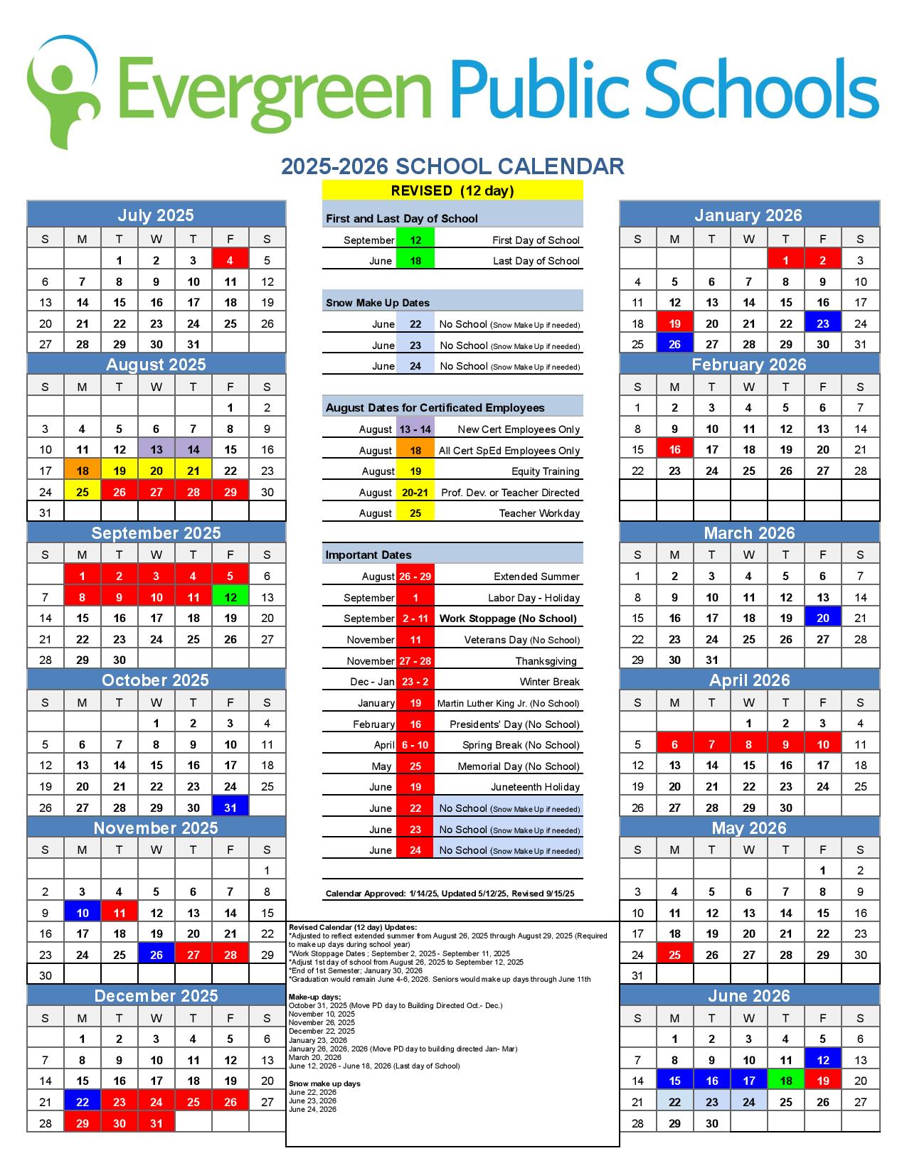 Evergreen Public Schools Calendar 2025 2026 in PDF