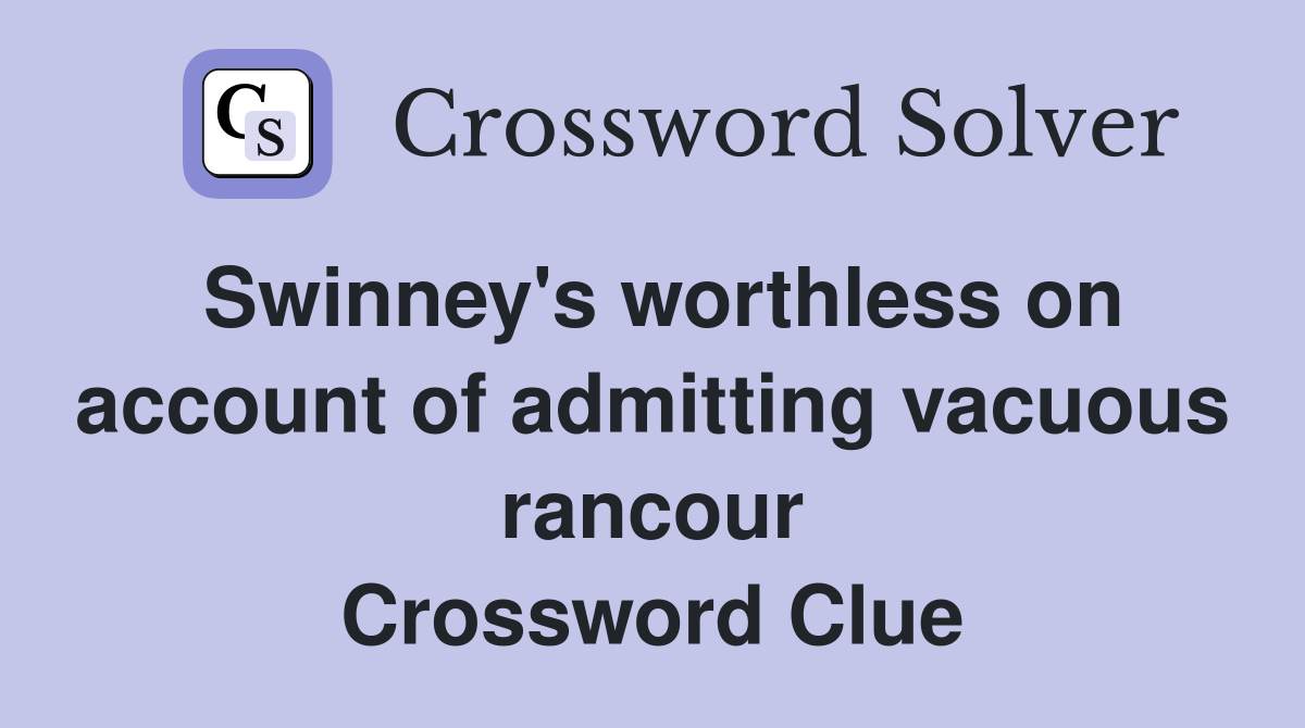 Swinney #39 s worthless on account of admitting vacuous rancour Crossword